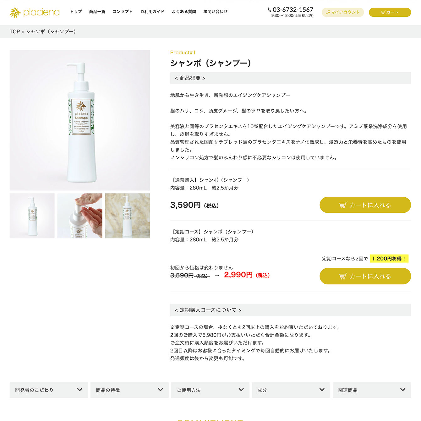 プラセンタ配合のシャンプー、トリートメントのECサイト構築