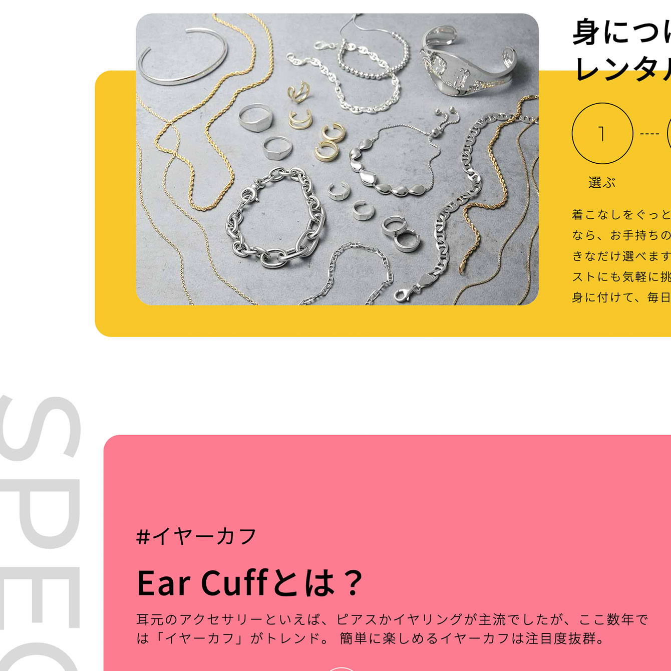 「アクセサリーはレンタルする時代」。毎日目紛しいスピードで変わるファッションの流行を「レンタルする」という形で楽しめる、アクセサリーのレンタルサイトです。ターゲットは、流行っているものを身に付けたい「流行を追う若者」。ターゲットの年齢層に合わせ、SNSなどで馴染みの深い縦長比率のメインビジュアルにしました。サイト全体も、カラフルな色使い・ポップな文字の配置などで、若者にヒットするデザインを目指しました。 機能面に関しては、通常のECサイトのカート機能とは別にレンタル用の受注システムを搭載。レンタル開始〜返却完了までを管理画面でステータス管理でき、自動メール機能でユーザーへ返却を促す仕組みも自動化しています。